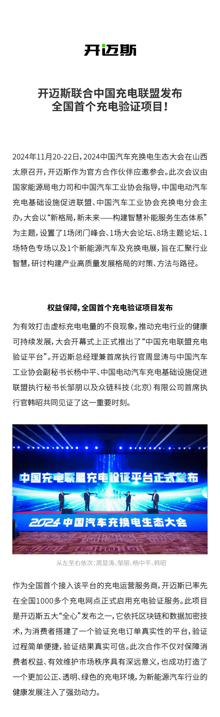 開邁斯聯(lián)合中國充電聯(lián)盟發(fā)布全國首個(gè)充電驗(yàn)證項(xiàng)目!